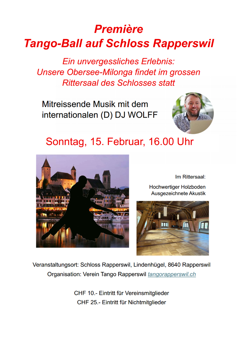 Tango-Ball auf Schloss Rapperswil– eine Première! - 16.00 Uhr im Rittersaal